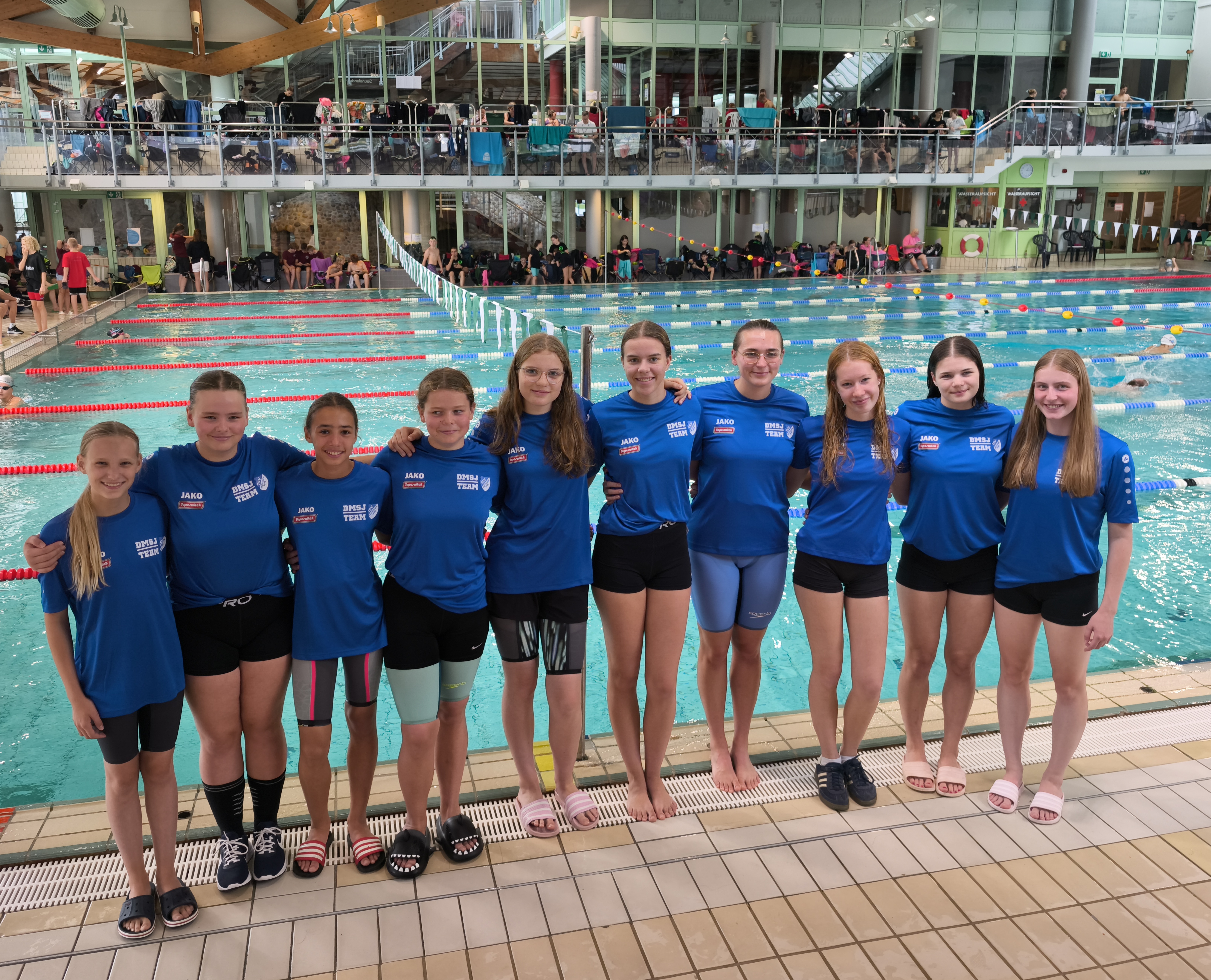 Pattensen (mh) – Der diesjährige Deutsche Mannschaftswettbewerb Schwimmen der Jugend (DMSJ) auf Bezirksebene am vergangenen Wochenende im Wasserparadies hat kürzlich gezwungenermaßen einen deutlich höheren Stellenwert für alle auf Teamebene Wettkampf-schwimmsport treibenden Vereine bekommen, da die Veranstaltung auf nächsthöherer, niedersächsischer Ebene in diesem Jahr erstmals aufgrund eines fehlenden Ausrichters ausfallen wird. So galt es für alle teilnehmenden Schwimmclubs, schon hier ihre Mannschaften bestmöglich leistungsstark aufzustellen, damit man sich ggfls. auch hier über die unterste Ebene für den im Dezember 2025 stattfindenden Bundesentscheid qualifizieren kann.